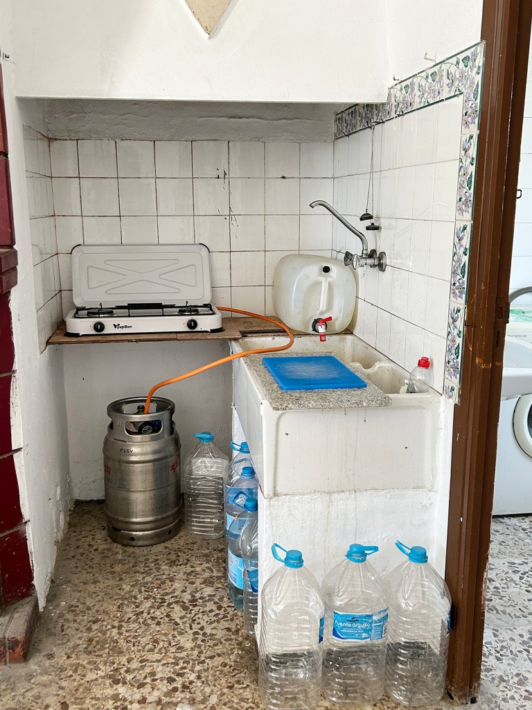 Bring your own sleeping bag. Drinking water is fetched from a nearby spring or shop. You can freely collect firewood from nature (trees must not be cut down). The Piedras Lisas lodge is furnished. There are 6-8 beds. The house has a kitchen/livingroom/bedroom. There are cooking and eating utensils and water canisters and a gas bottle and gas stove. The living room- kitchen has a fireplace. The lodge running water and bathroom.